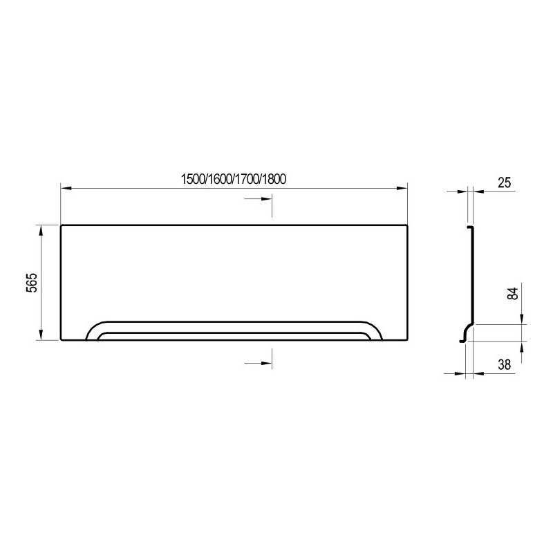 Priekinė apdailos plokštė, Matmenys - 1500x565x25 mm, Baltos spalvos, Tinka vonioms Ravak Classic 150x70 ir Vanda II 150 x 70 cm, 2 metų garantija