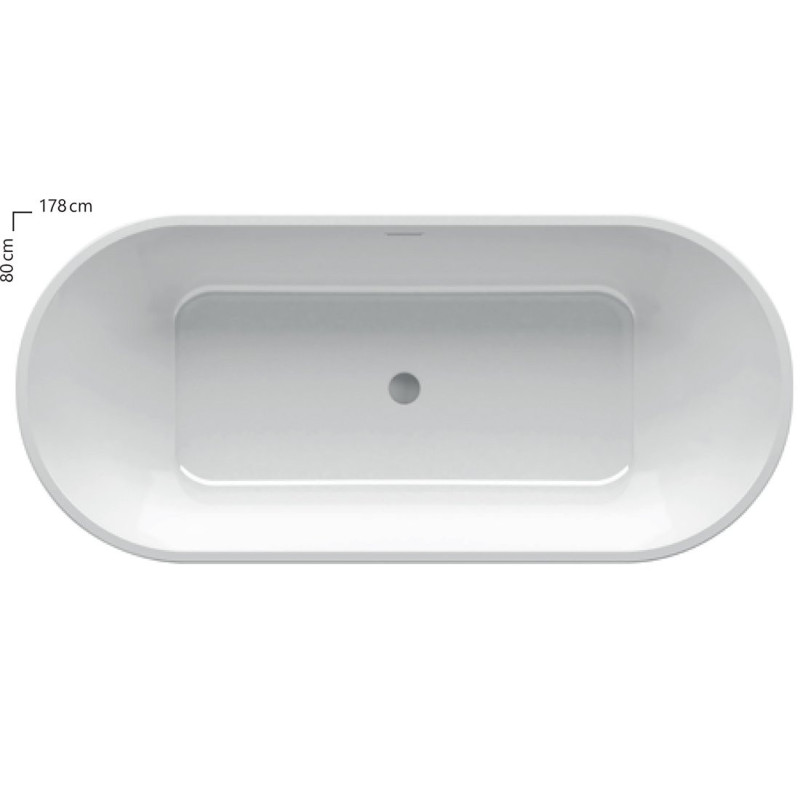 Akrilinė vonia, Ovali, Matmenys - 178x80 cm, Sniego baltumo spalvos, Maks. vandens tūris - 310 l, Lengva priežiūra, Ilgiau išsilaikantis šiltas vanduo, Komplektuojama su kojelėmis ir vandens nutekėjimo komplektu, 10 metų garantija