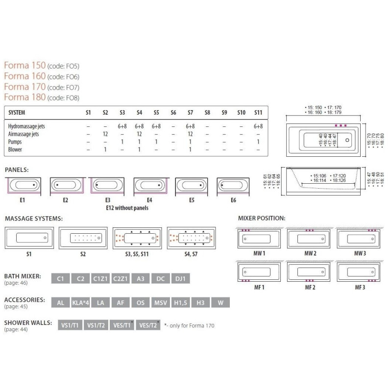 Akrilinė stačiakampė vonia Balteco Forma 170x75cm, su rėmu ir apdaila E1/E3. Vonia yra be masažo sistemos (S1 variantas). Balteco Panel+ šoninių uždangų sprendimo privalumai: L formos akrilinės uždangos yra be kampinių jungčių, jų kraštai dailiai užlenkti (nėra technologinių pjūvio pėdsakų), o taip pat naudojamos bevaržtės magnetinės jungtys, todėl uždangos yra visiškai vientisos. Tai, voniai Balteco Forma 170x75cm, suteikia išskirtini dizainą, todėl ji derinsis prie įvairaus vonios kambario interjero. Suteikiama 5 metų garantija