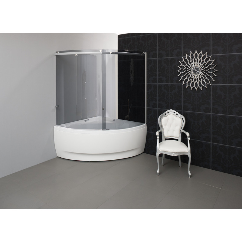 Akrilinė vonia, Kampinė, Matmenys 150x150cm, Be masažo sistemos, Maks. vandens tūris - 330l, Išskirtinis dizainas, Galimybė komplektuoti su tonuoto grūdinto stiklo dušo sienele (153cm aukštis), Bevaržtės magnetinės jungtys uždangoms