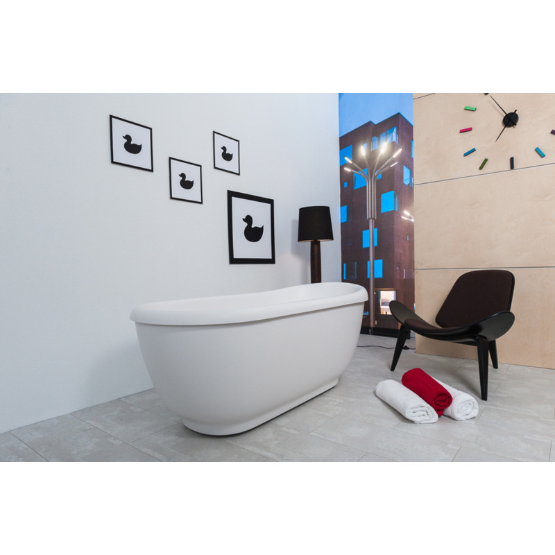 Akmens masės vonia, Ovali, Matmenys 167x74cm, Masyvus ir tvirtas korpusas, Maks. vandens tūris - 230l, Su šoninėmis uždangomis, Rėmas su reguliuojamo aukščio kojelėmis, Išleidimo dangtelis, Avarinio persipylimo anga