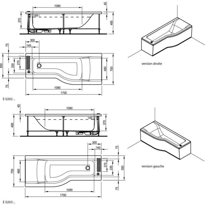 Akrilinė vonia, Asimetrinė, Matmenys 170x55/70x49cm, Su apdailos plokšte, Baltos spalvos, Maks. vandens tūris - 149l, Laisvai statoma, Su atrama ir sifonu, Kairysis variantas, 25 metų garantija