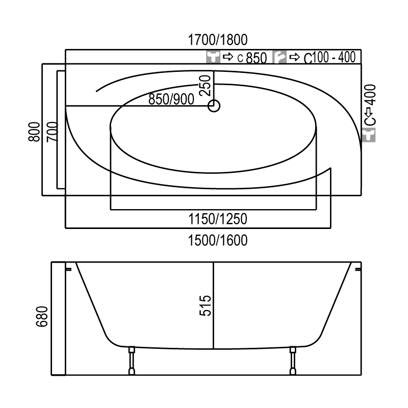 Akrilinė vonia, Stačiakampė, Matmenys 180x80x68cm, Baltos spalvos, Maks. vandens tūris - 250l, 10 metų garantija, Lengvai valomas blizgus paviršius, Atspari cheminėms medžiagoms