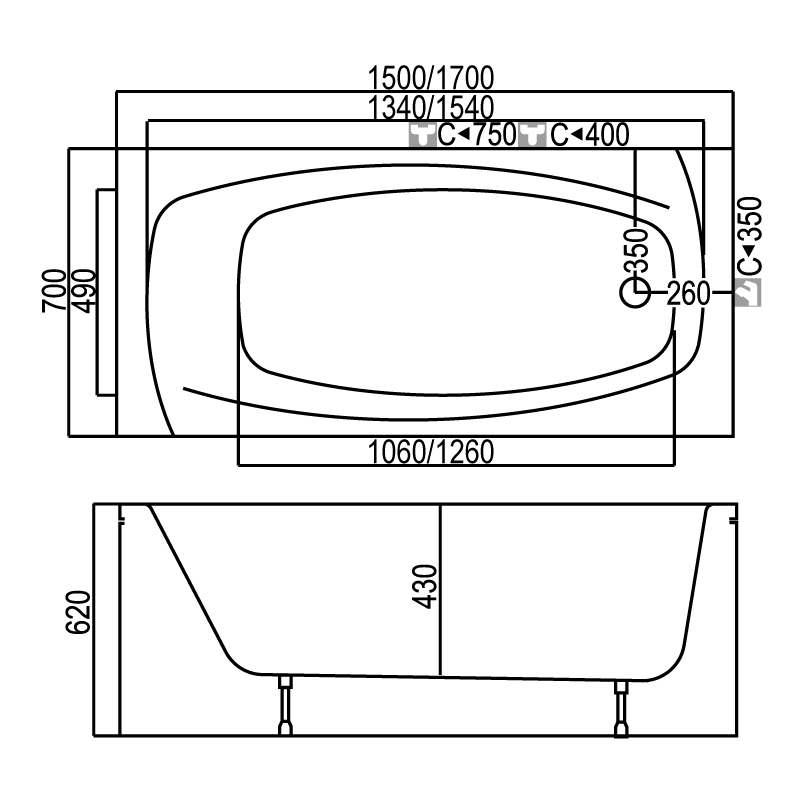 Apdailos plokštė voniai Kyma Lina 150cm, priekinė