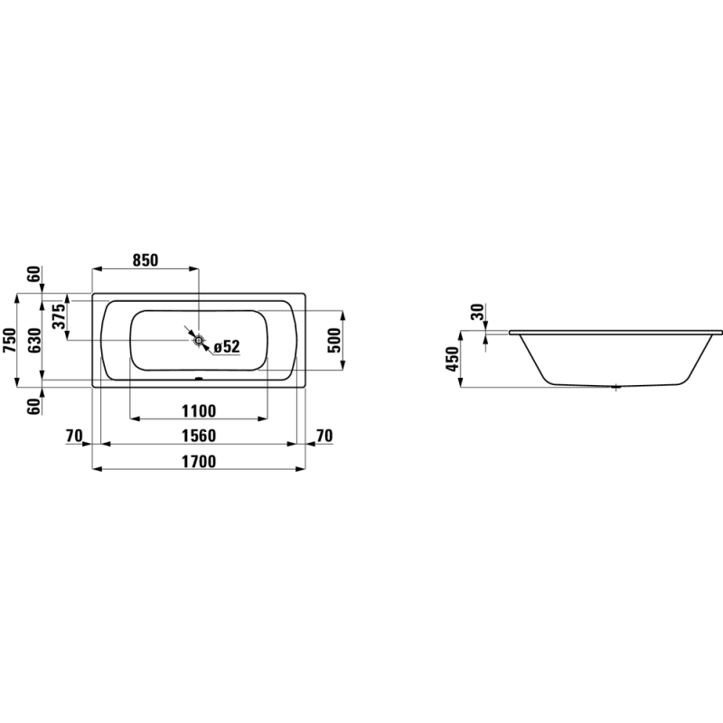 Vonia Laufen Moderna Plus 170x75x45 cm, įleidžiama