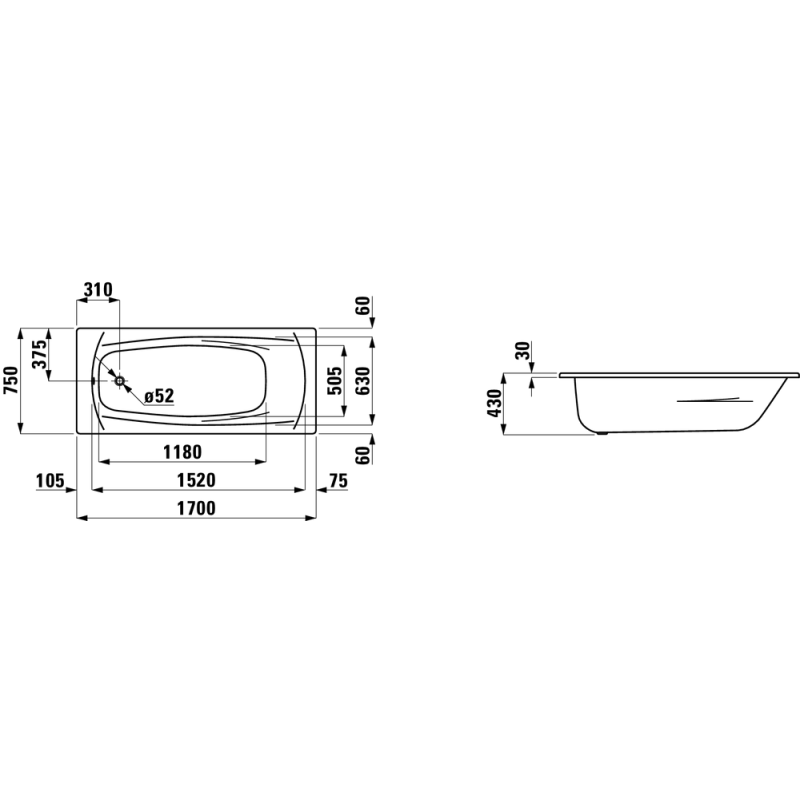 Vonia Laufen Palladium 170x75x43cm, įleidžiama