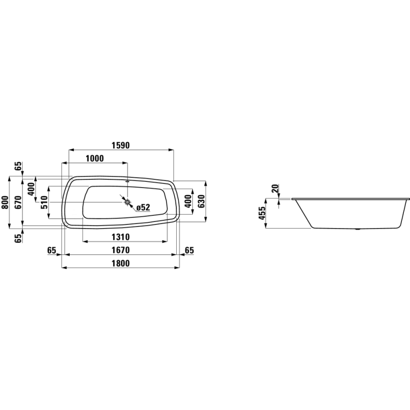 Vonia Laufen Palomba 180x80cm, įleidžiama