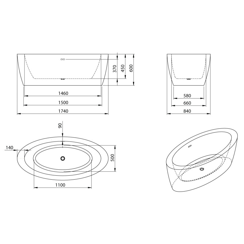 Akrilinė vonia, Ovali, Matmenys 174x84x60cm, Laisvai pastatoma, Baltos spalvos, Maks. vandens tūris - 212l, 10 metų garantija, Lengvai valomas blizgus paviršius, Ilgiau išsilaikantis šiltas vanduo, Su "Click-Clack" sifonu