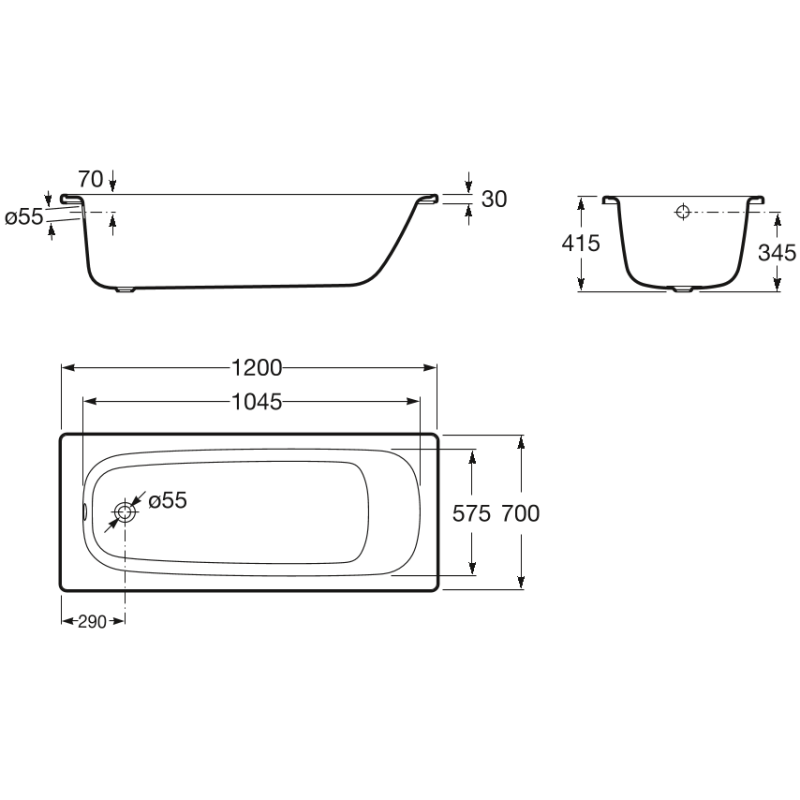 Plieninė vonia, Stačiakampė, Matmenys 120x70x42cm, Baltos spalvos, Maks. vandens tūris - 125l, Atspari temperatūrų skirtumams, cheminiam poveikiui, Lengvai valomas paviršius, 2 metų garantija