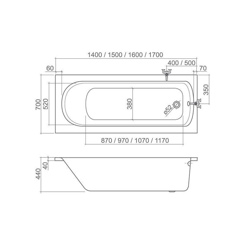 Akrilinė vonia, Stačiakampė, Matmenys 160x70cm, Baltos spalvos, Maks. vandens tūris - 160l, 10 metų garantija, Lengvai valomas, atsparus cheminėms priemonėms, blizgus paviršius, Ilgiau išsilaikantis šiltas vanduo