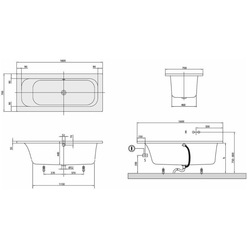 Akrilinė vonia, Stačiakampė, Matmenys 160x70cm, Baltos spalvos, Maks. vandens tūris - 110l, 10 metų garantija, Lengvai valomas, atsparus cheminėms priemonėms, blizgus paviršius, Ilgiau išsilaikantis šiltas vanduo