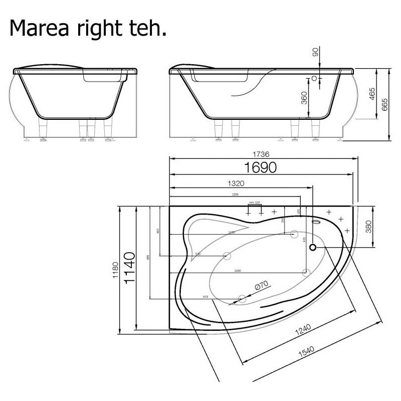 Akmens masės vonia Vispool Marea 174x118cm, kampinė, dešinė. Vonia Vispool Marea derinsis prie įvairaus vonios kambario interjero. Vonios paviršius yra blizgus ir lengvai valomas, todėl galėsite mėgautis švaria vonia, neskirdami daug dėmesio jos priežiūrai. Akmens masės vonia Vispool Marea yra iš tvirtos akmens masės, ilgai išlaiko šiltą vandenį bei yra atspari cheminėms priemonėms, todėl galite būti tikri, jog vonia tarnaus itin ilgai. Maksimalus vandens tūris - 290l. Suteikiama 25 metų garantija.