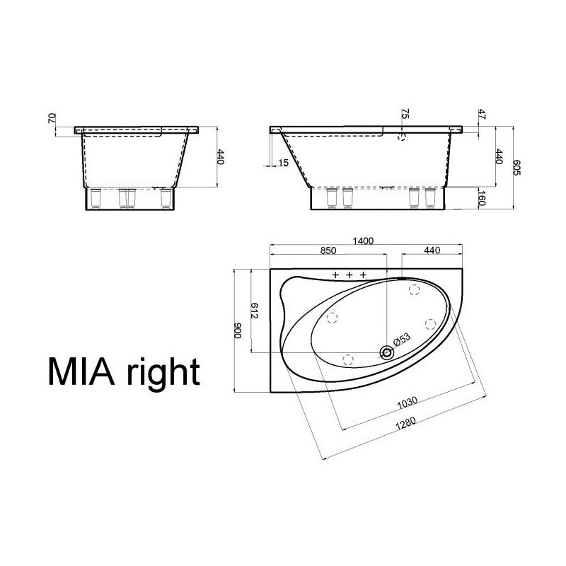 Akmens masės vonia Vispool Mia 140x90cm, kampinė, dešinė. Vonia Vispool Mia derinsis prie įvairaus vonios kambario interjero. Vonios paviršius yra blizgus ir lengvai valomas, todėl galėsite mėgautis švaria vonia, neskirdami daug dėmesio jos priežiūrai. Akmens masės vonia Vispool Mia yra iš tvirtos akmens masės, ilgai išlaiko šiltą vandenį bei yra atspari cheminėms priemonėms, todėl galite būti tikri, jog vonia tarnaus itin ilgai. Maksimalus vandens tūris - 180l. Suteikiama 25 metų garantija.