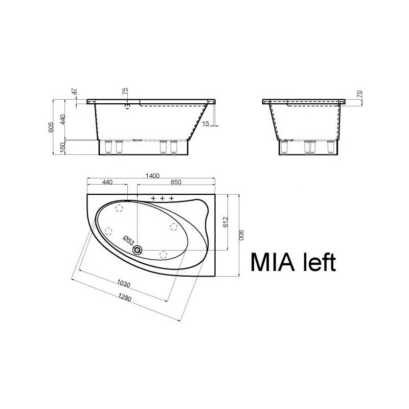 Akmens masės vonia Vispool Mia 140x90cm, kampinė, kairė. Vonia Vispool Mia derinsis prie įvairaus vonios kambario interjero. Vonios paviršius yra blizgus ir lengvai valomas, todėl galėsite mėgautis švaria vonia, neskirdami daug dėmesio jos priežiūrai. Akmens masės vonia Vispool Mia yra iš tvirtos akmens masės, ilgai išlaiko šiltą vandenį bei yra atspari cheminėms priemonėms, todėl galite būti tikri, jog vonia tarnaus itin ilgai. Maksimalus vandens tūris - 180l. Suteikiama 25 metų garantija.