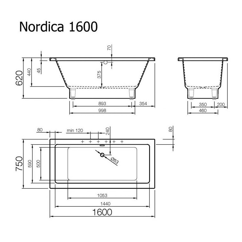 Vonia Vispool Nordica 160x75 cm, stačiakampė